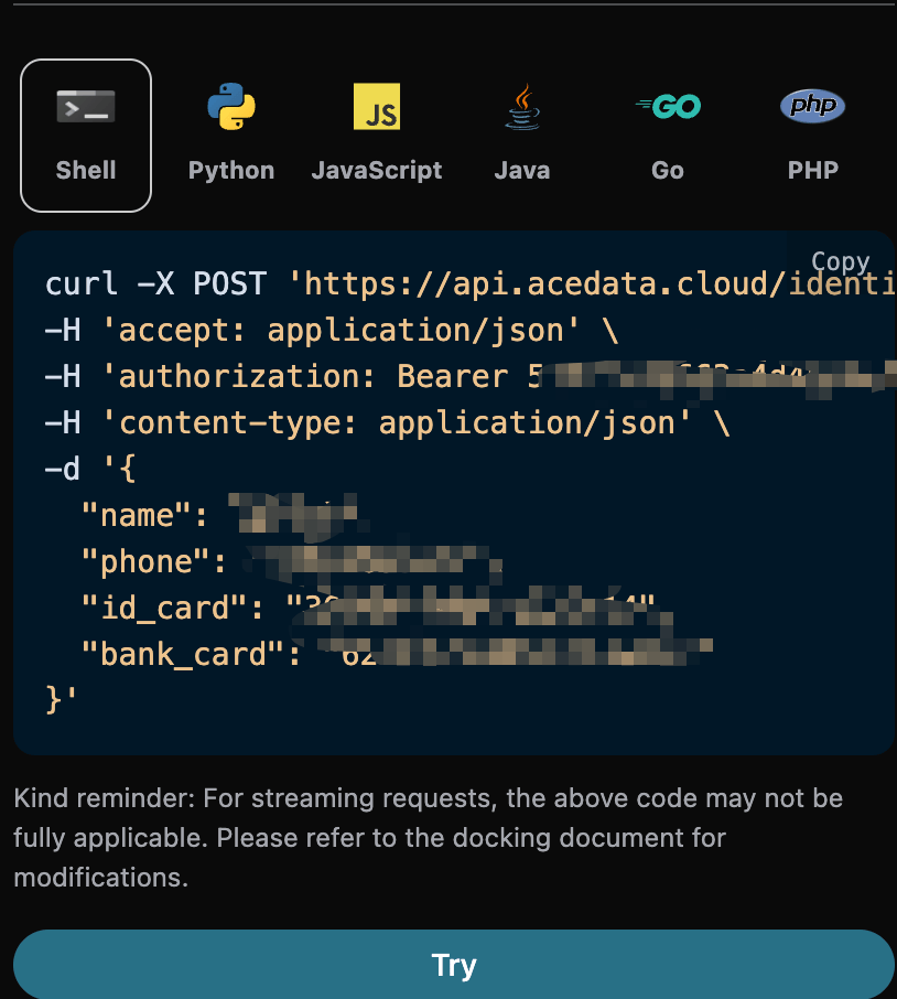 Um die API zu nutzen, müssen Sie zunächst auf die entsprechende Seite der Bankkarten Vier Elemente Verifizierung API gehen und den entsprechenden Dienst beantragen. Nachdem Sie die Seite betreten haben, klicken Sie auf die Schaltfläche „Acquire“, wie im Bild gezeigt: