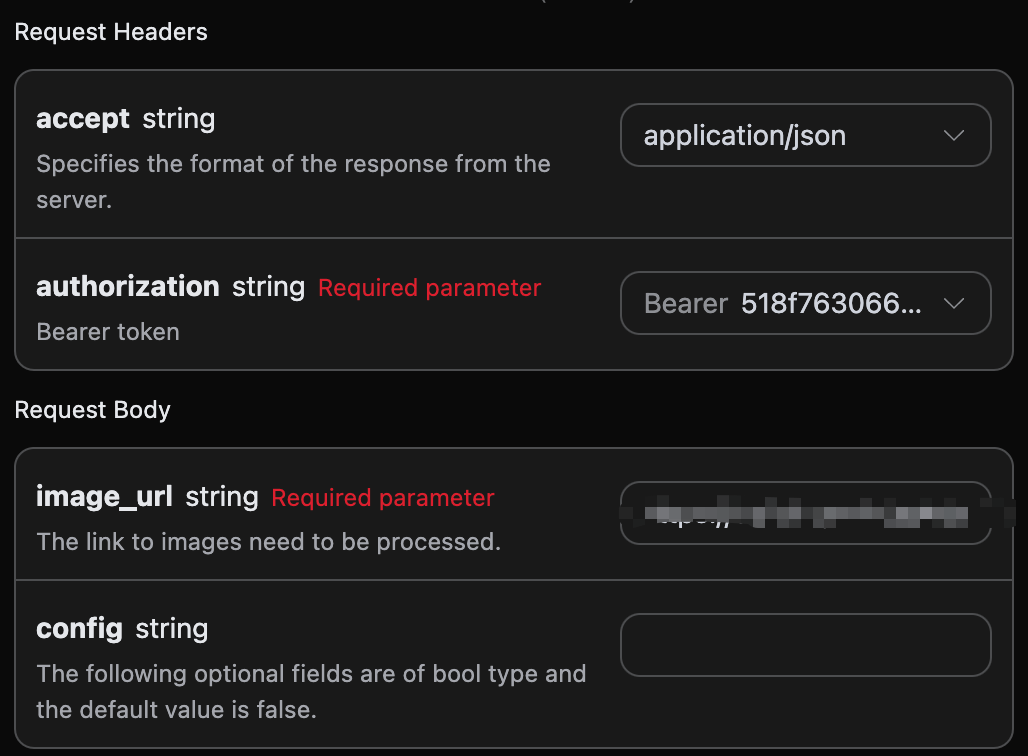 image_url: Der Link zum Bild des Personalausweises, das verarbeitet werden soll.config: Optionale Konfigurationselemente, boolesche Felder, standardmäßig alle auf false, unterstütztcopy_warn,border_check_warn,reshoot_warn,detect_ps_warn,temp_id_warn,quality(Schwellenwert 0-100).