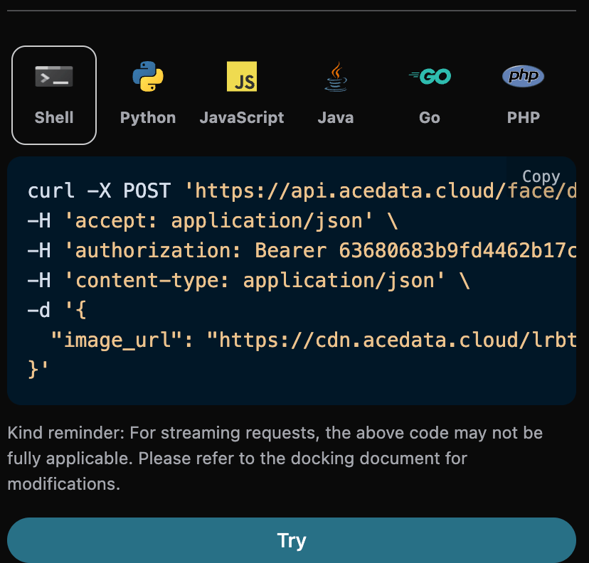 accept:想要接收怎样格式的响应结果,这里填写为application/json,即 JSON 格式。authorization:调用 API 的密钥,申请之后可以直接下拉选择。