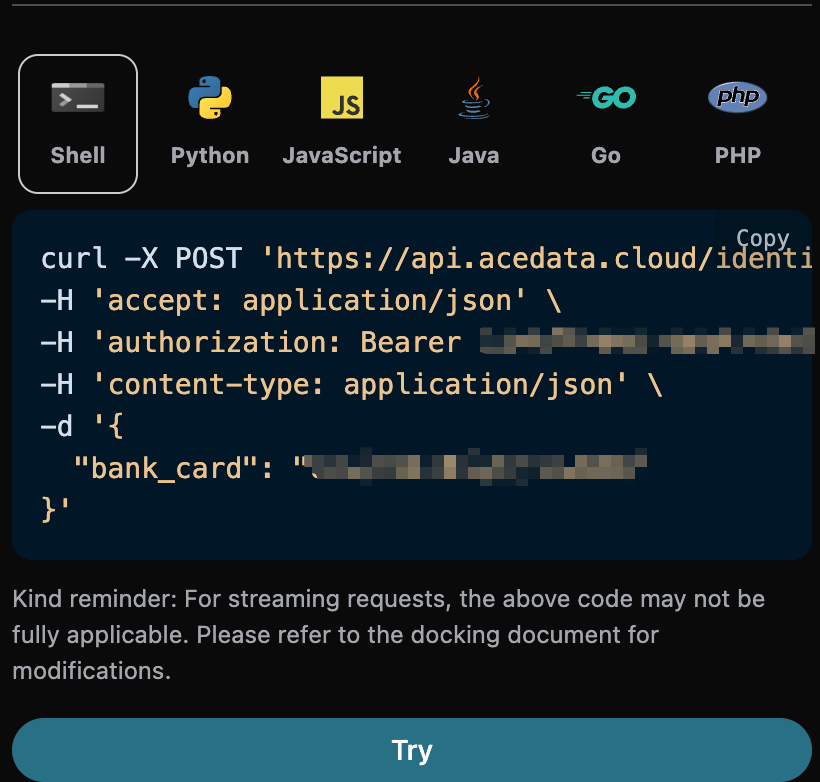 首先先了解下基本的使用方式,就是输入银行卡号码,便可获得处理后验证结果,首先需要简单地传递一个bank_card 字段,我们接下来就可以在界面上填写对应的内容,如图所示: