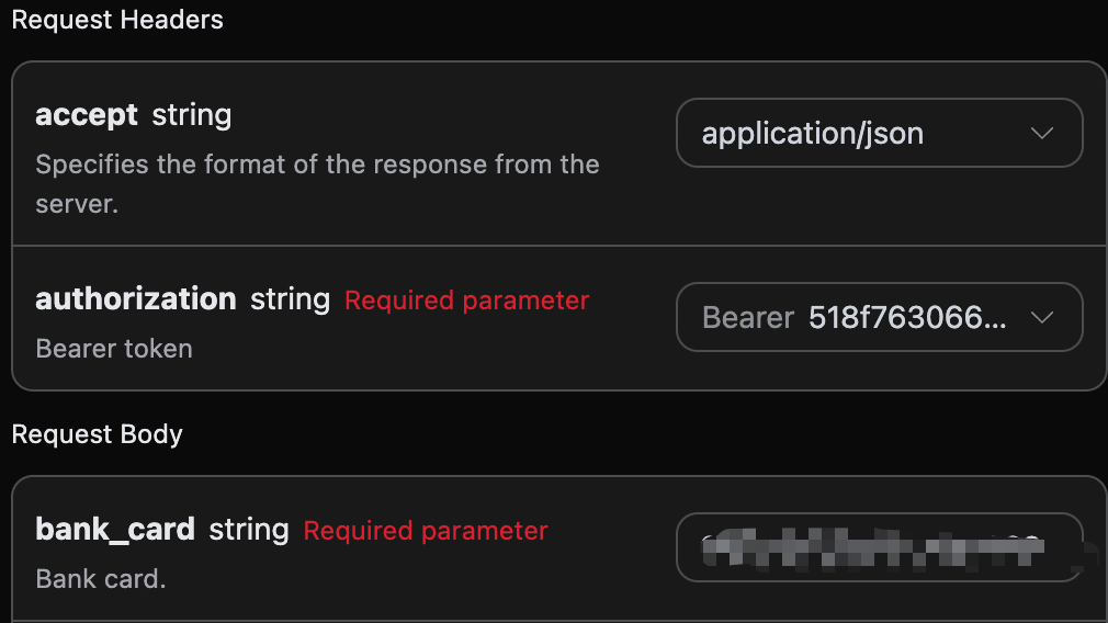 accept:想要接收怎样格式的响应结果,这里填写为application/json,即 JSON 格式。authorization:调用 API 的密钥,申请之后可以直接下拉选择。