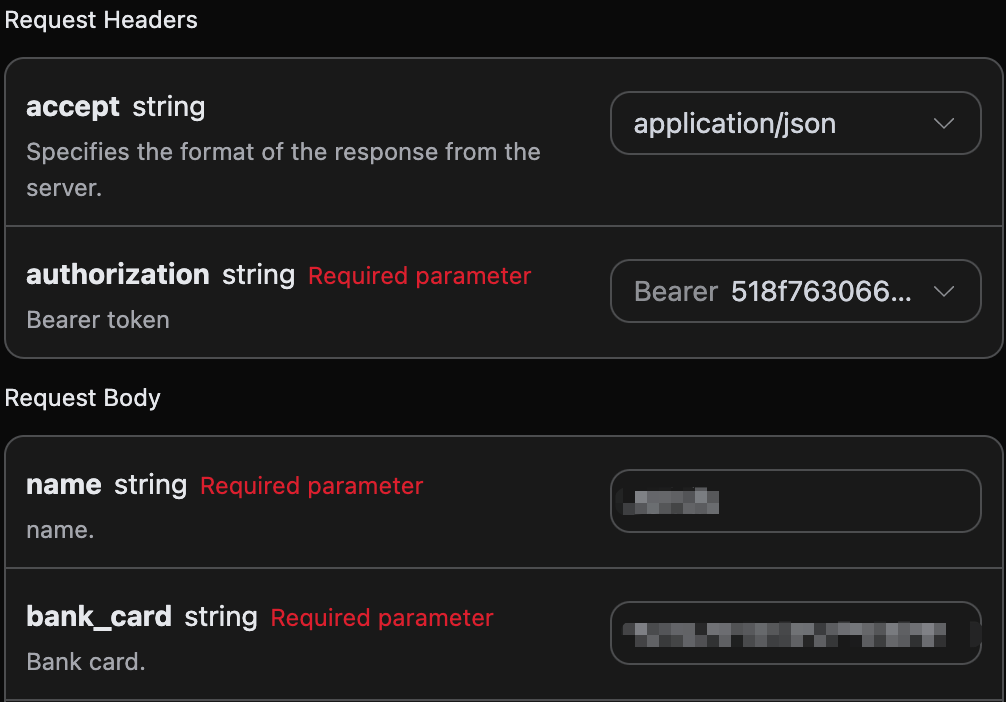 accept:想要接收怎样格式的响应结果,这里填写为application/json,即 JSON 格式。authorization:调用 API 的密钥,申请之后可以直接下拉选择。
