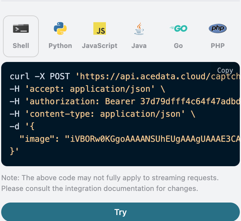 另外如果想生成对应的对接代码,可以直接复制生成,例如 CURL 的代码如下: