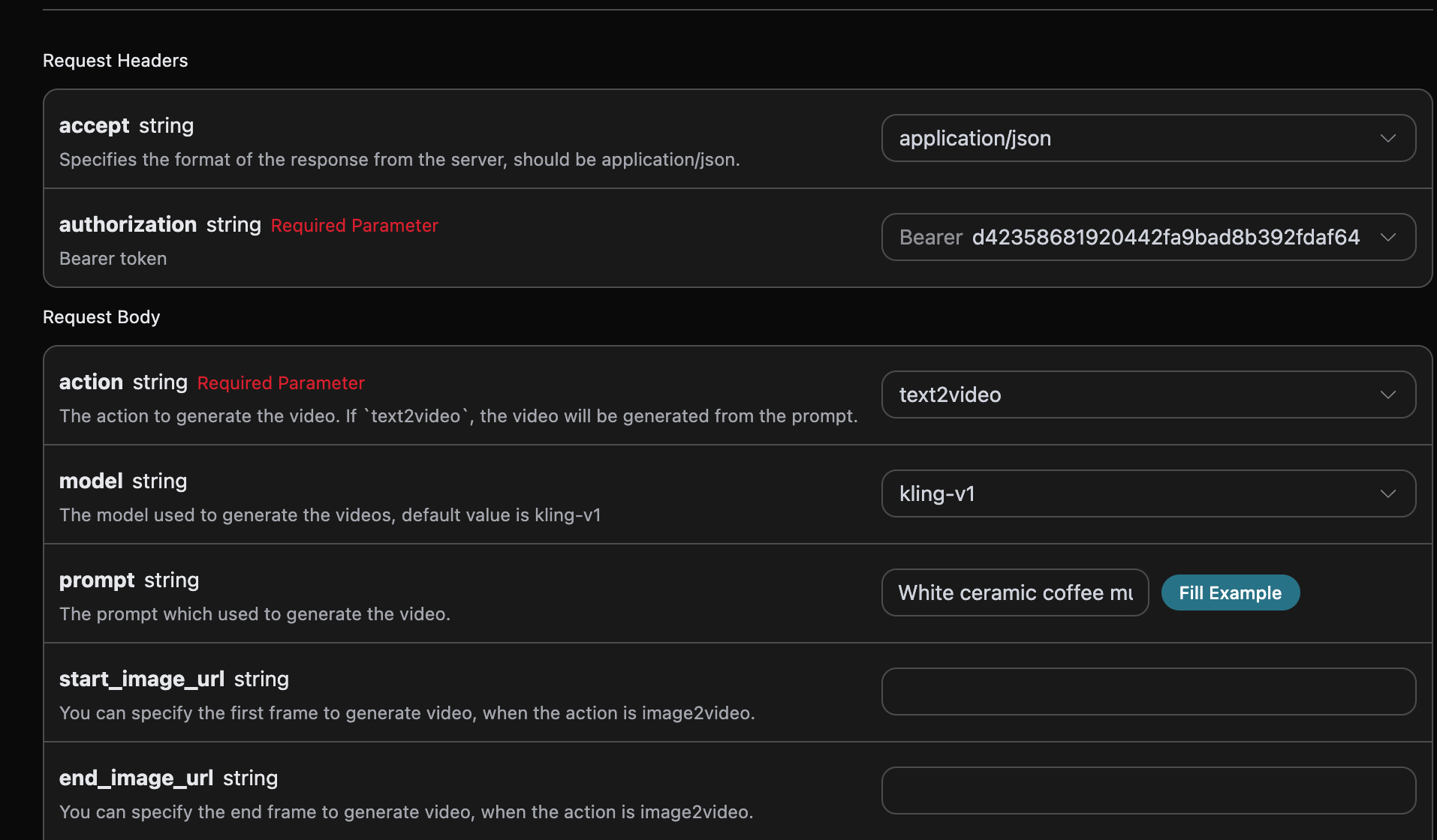 accept:想要接收怎样格式的响应结果,这里填写为application/json,即 JSON 格式。authorization:调用 API 的密钥,申请之后可以直接下拉选择。