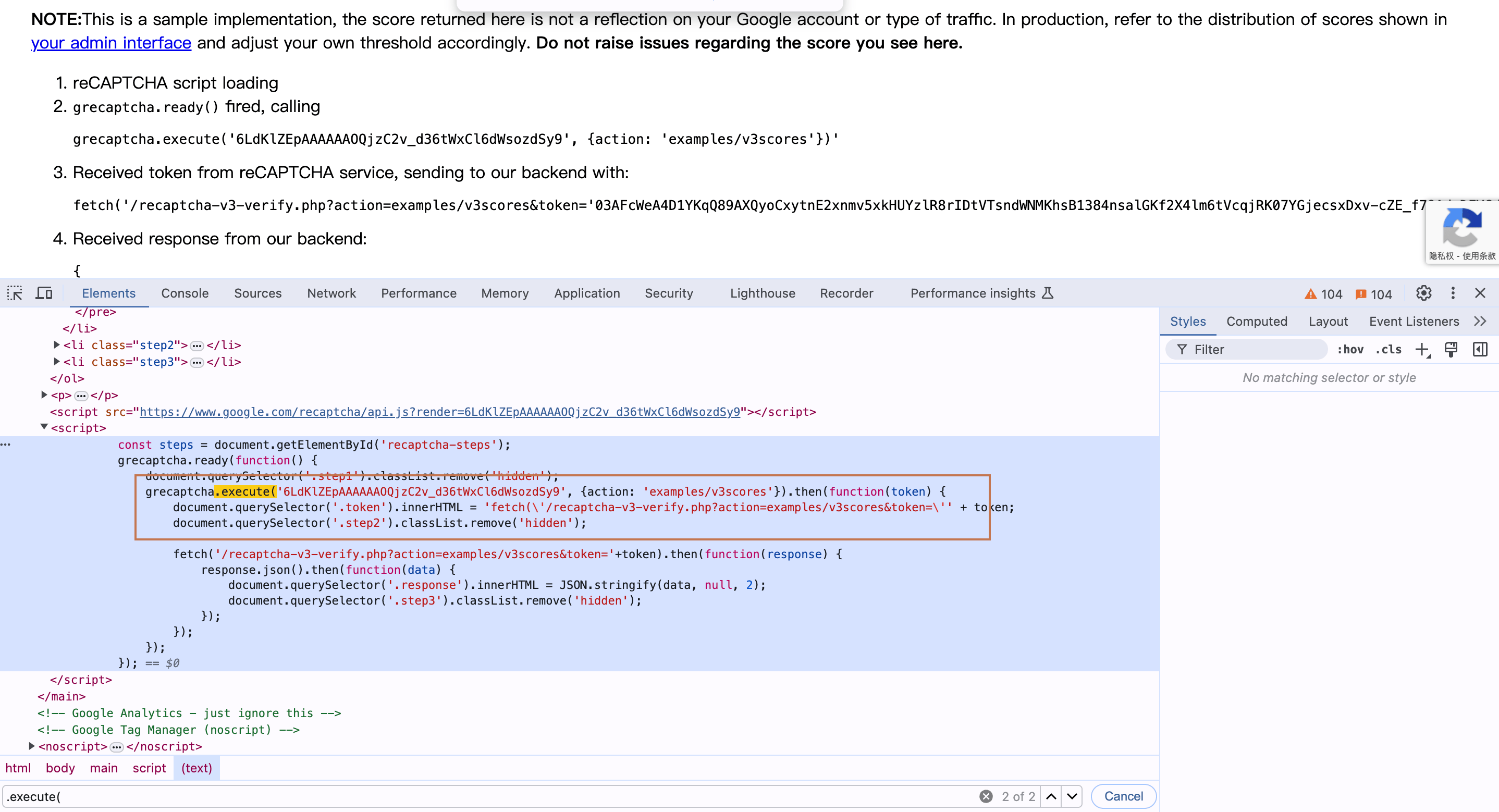 首先先了解下基本的使用方式,与Recaptcha2相比,我们需要额外传入一个参数page_action,这个参数的获取需要去代码中获取,本次展示的网速URL为:https://recaptcha-demo.appspot.com/recaptcha-v3-request-scores.php,下面展示一种获取的方法: