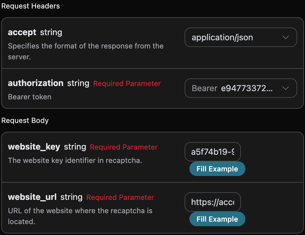 website_url: l’URL del sito web che deve elaborare il captcha.website_key: l’identificatore della chiave del sito in hCaptcha.
