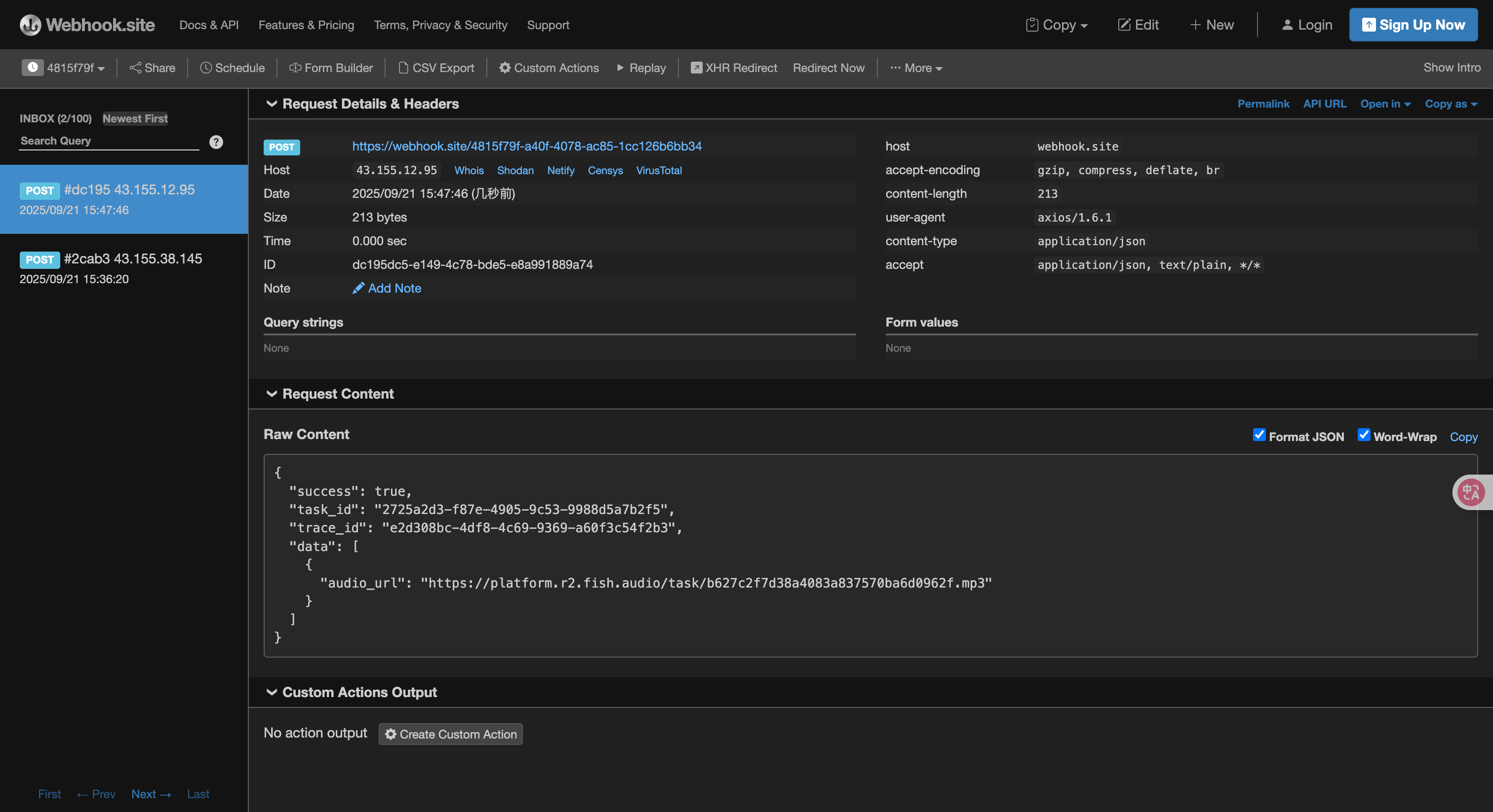https://webhook.site/4815f79f-a40f-4078-ac85-1cc126b6bb34 zobaczyć wynik zadania generacji, jak pokazano na obrazku: