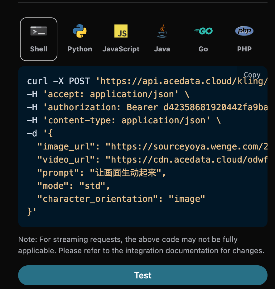 Najpierw zapoznaj się z podstawowym sposobem użycia, czyli wprowadzeniem słowa kluczowegoprompt, adresu obrazu image_url oraz linku do wideo video_url, aby uzyskać przetworzony wynik. Następnie musimy również wprowadzić model mode, który obecnie głównie obejmuje modele std i pro, szczegóły są następujące: