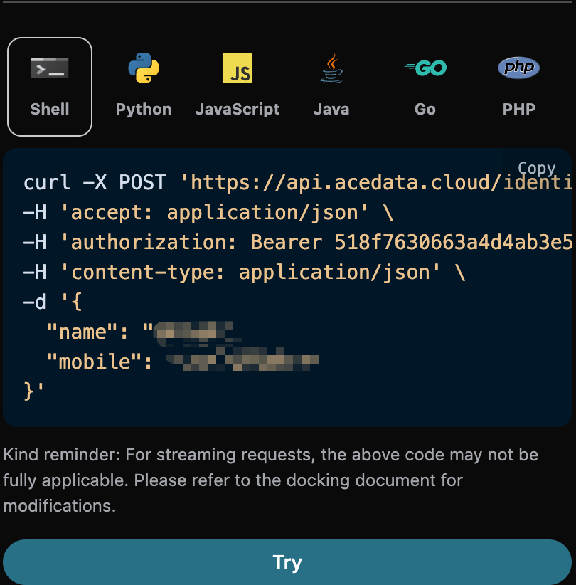 Först bör du förstå den grundläggande användningsmetoden, vilket är att ange mobilnumret för att få det bearbetade resultatet. Du behöver först enkelt skicka ettmobile fält. Vi kan sedan fylla i motsvarande innehåll på gränssnittet, som visas i bilden: